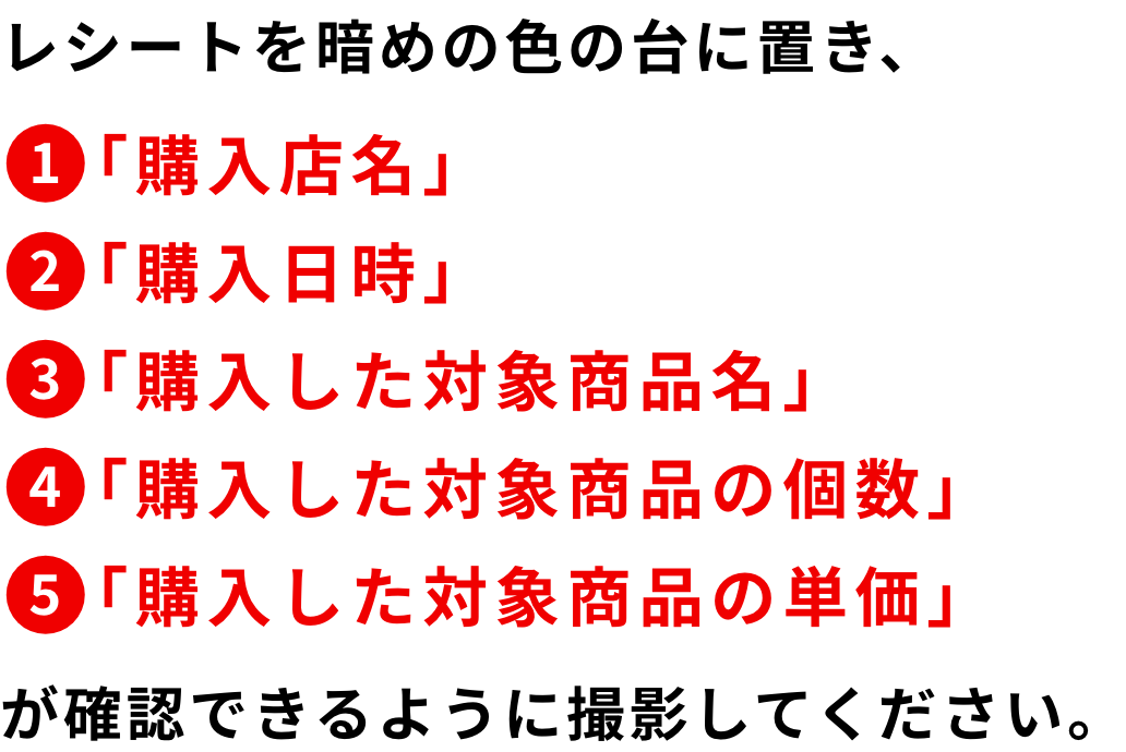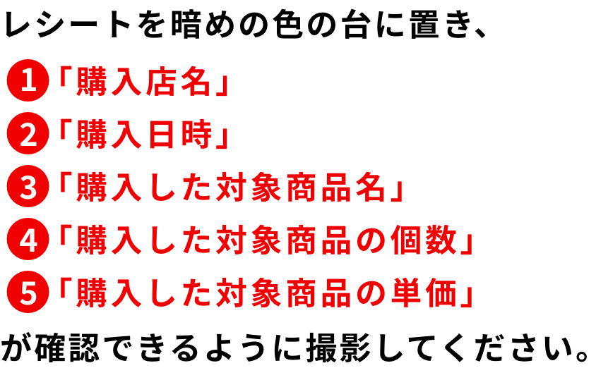 対象商品を購入したレシート画像を