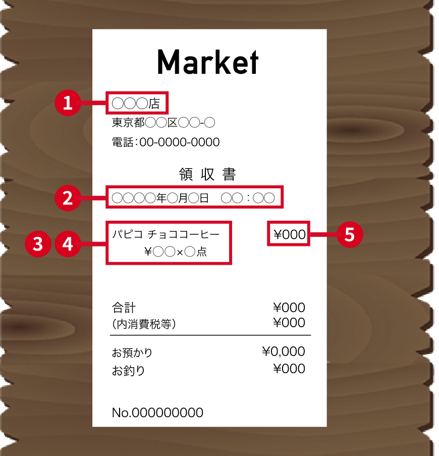 暗めの色の台にレシートを置き、必ず真上から水平になるように撮影してください。